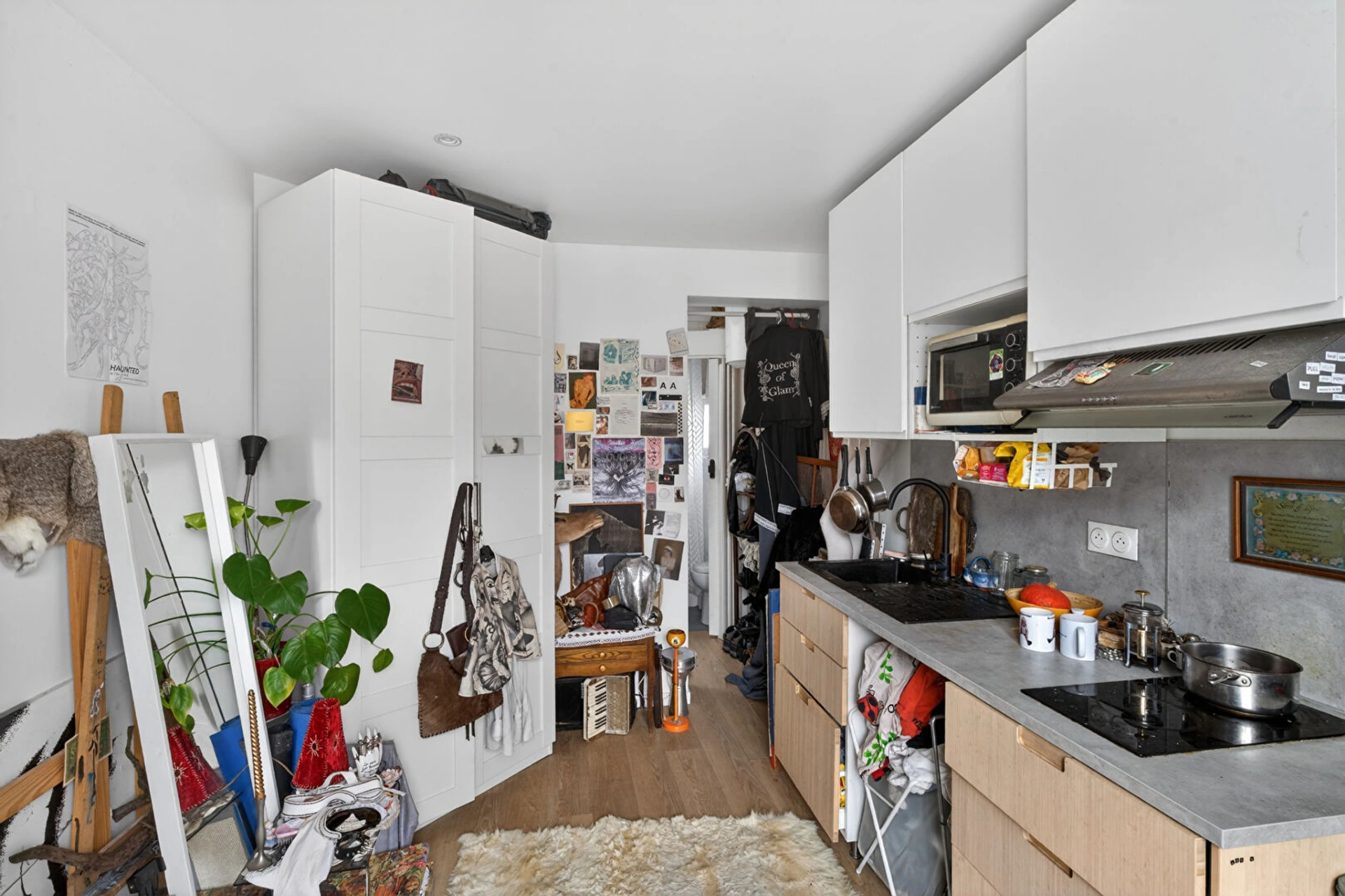 Situé rue de Chambery, au 6ème et dernier étage sans ascenseur, cet appartement de 13,2m2 Carrez et 15m2 au sol VENDU LOUÉ, en très bon état général se compose d'une pièce de vie avec kitchenette, un bureau, et d'une salle de douche avec WC sanibroyeur. Droit d'accès au WC commun sur le pallier.