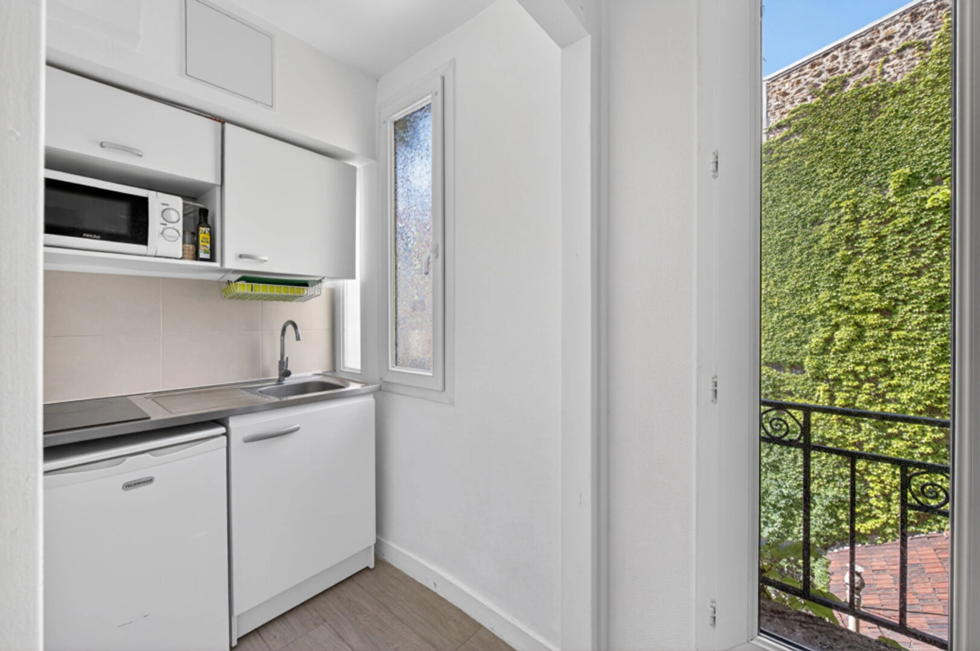 Il comprend : une pièce de vie agréable avec cuisine ouverte, une salle d'eau avec WC. Calme. Lumineux. Bien agencé.