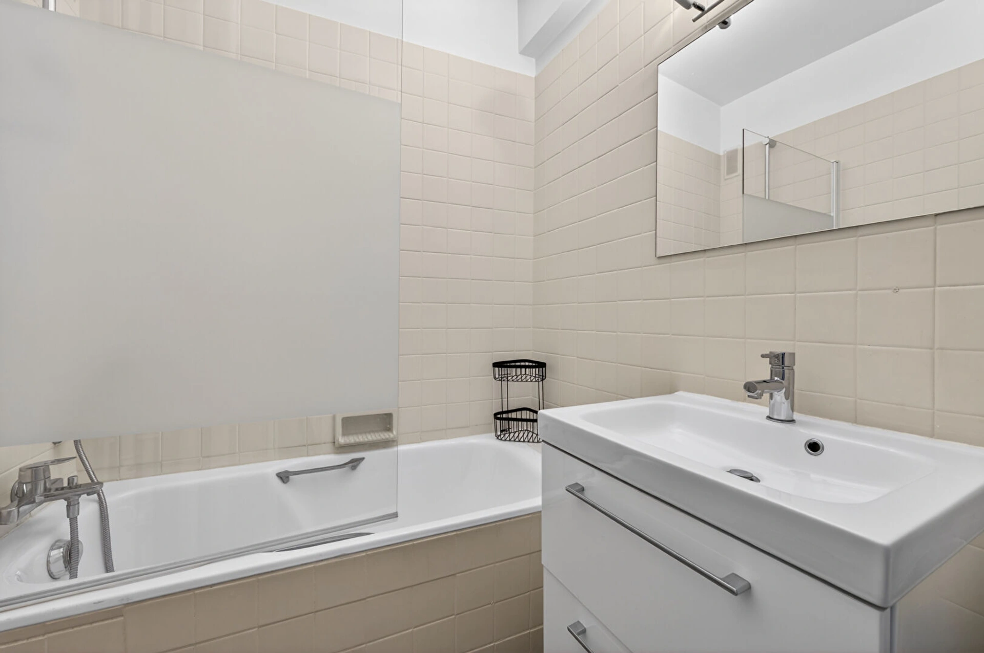 Situé rue de l'Abbé Groult, au 5ème étage avec ascenseur, cet appartement traversant en parfait état, se compose d'une entrée, d'un séjour lumineux de 21 m², d'une chambre sur cour, d'une cuisine entièrement équipée et aménagée, d'une salle de bains et d'un WC séparé.
